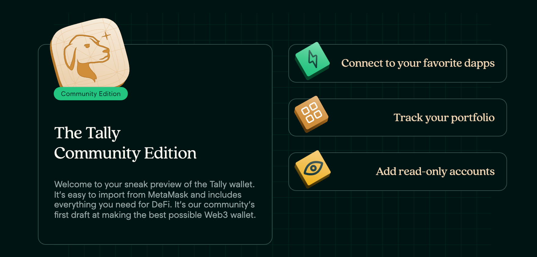 This is the first live version of the Tally wallet… and an early preview of what you can expect in the full version.