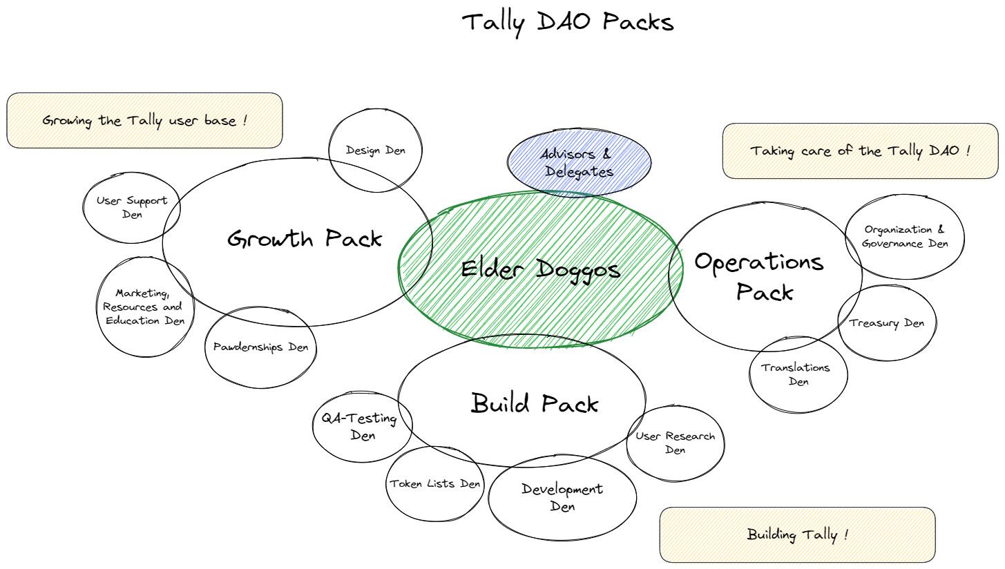We propose that the compensation reward mechanism for dens at the lowest level, the working groups can coordinate circles. Kris also expects that working groups could have the autonomy to implement other awards or allocation tools if that's something that they need. For example, if there's a lot of development work or things that can be quantified. Kris is interested to see how the dens start to manage themselves as we continue through this process. There will be monthly compensation for the leads. There will be leadership roles within the packs and dens. If you have an interest in having a leadership role, those will be available!