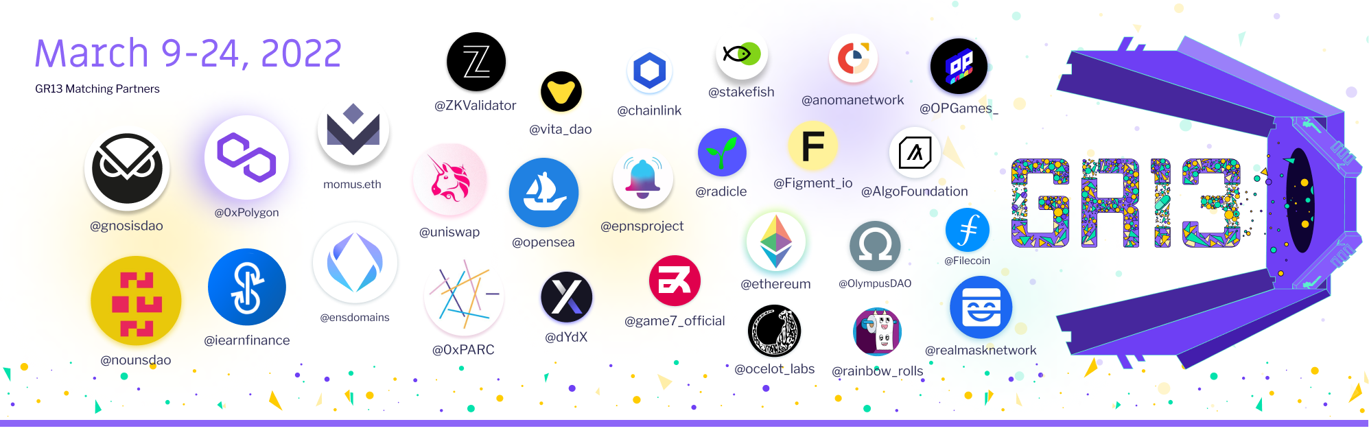 Gitcoin Grants is the largest crowdfunding platform in the Ethereum ecosystem. There are currently 13 active grants going on right now. Any contributions to a recipient’s grant will be matched by a centralized matching pool.