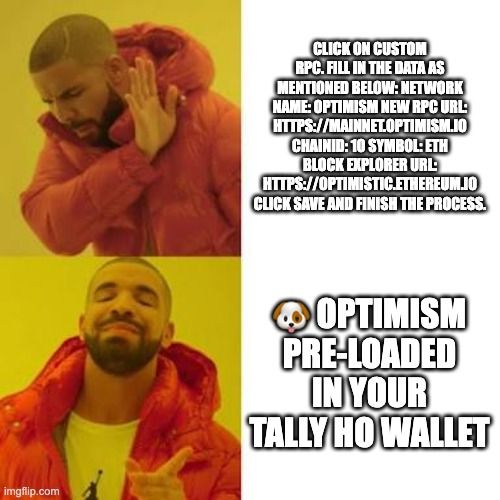 - Optimism comes pre-loaded in Tally Ho, so there’s no need to manually add it to your wallet’s user interface.