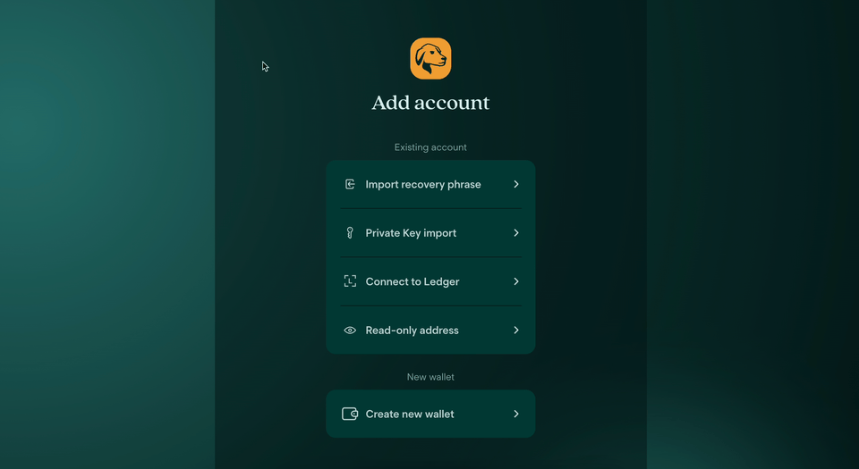 2. Upon clicking on + Add Wallet, you will be directed to a fullscreen onboarding flow as follows: