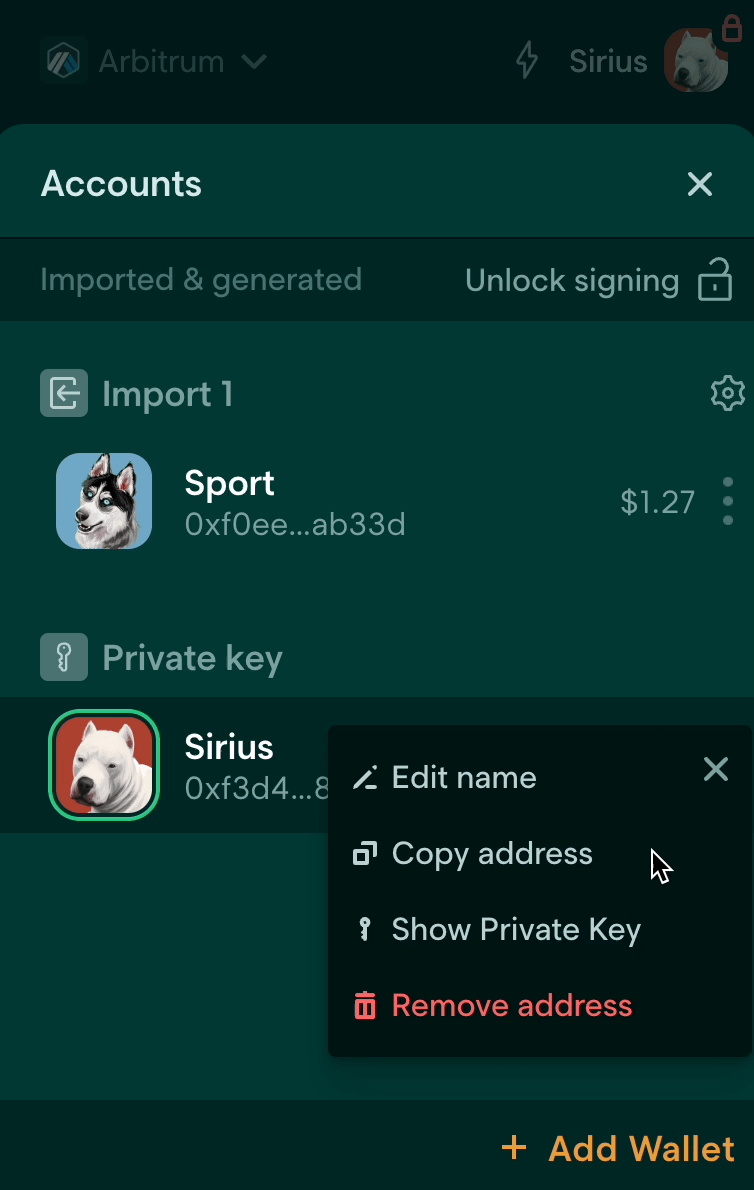 4. Navigate to the wallet to find your newly imported account under Private Key.
