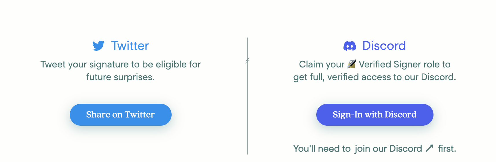 Note: Your Twitter and Discord accounts will NOT be linked to your Ethereum address.